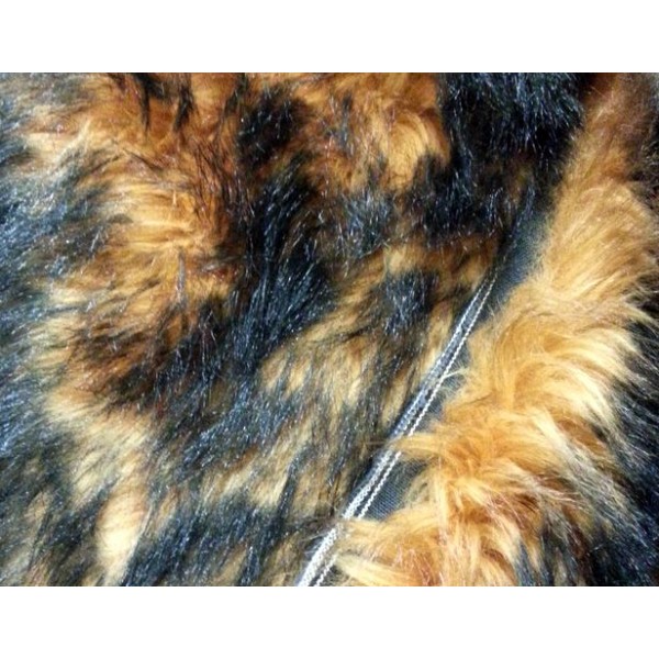 TISSU FAUSSE FOURRURE SUPERIEUR SYNTHÉTIQUE POILS LONGS ORANGE REFLET NOIR A0045