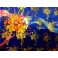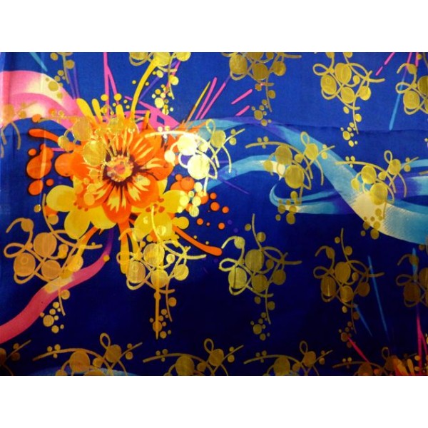 TISSU SATIN SOIE IMPRIME FLEURS FOND BLEU MARINE A0014